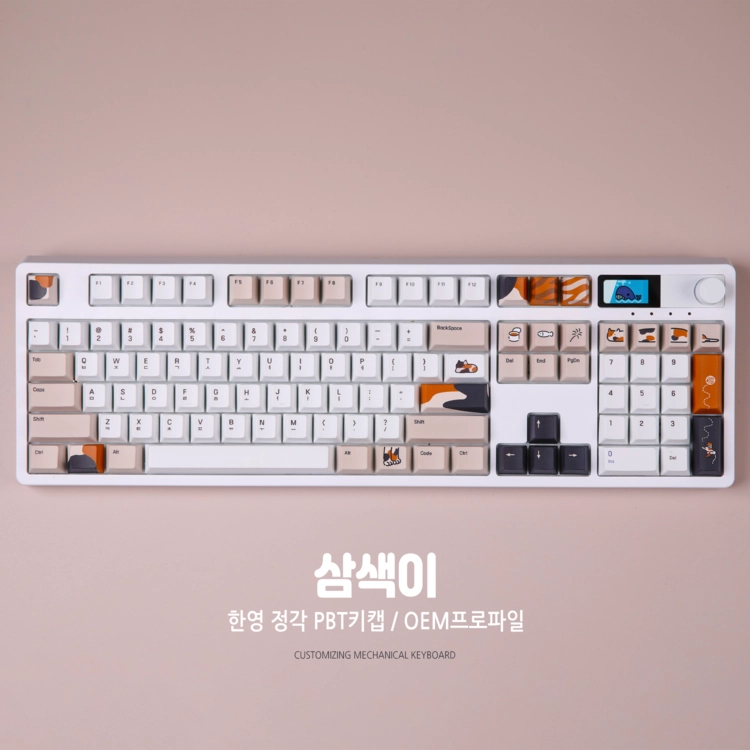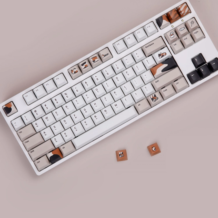 가츠 고양이 삼색이 129키 한글 PBT 체리 염료승화 커스텀 기계식 키보드 키캡