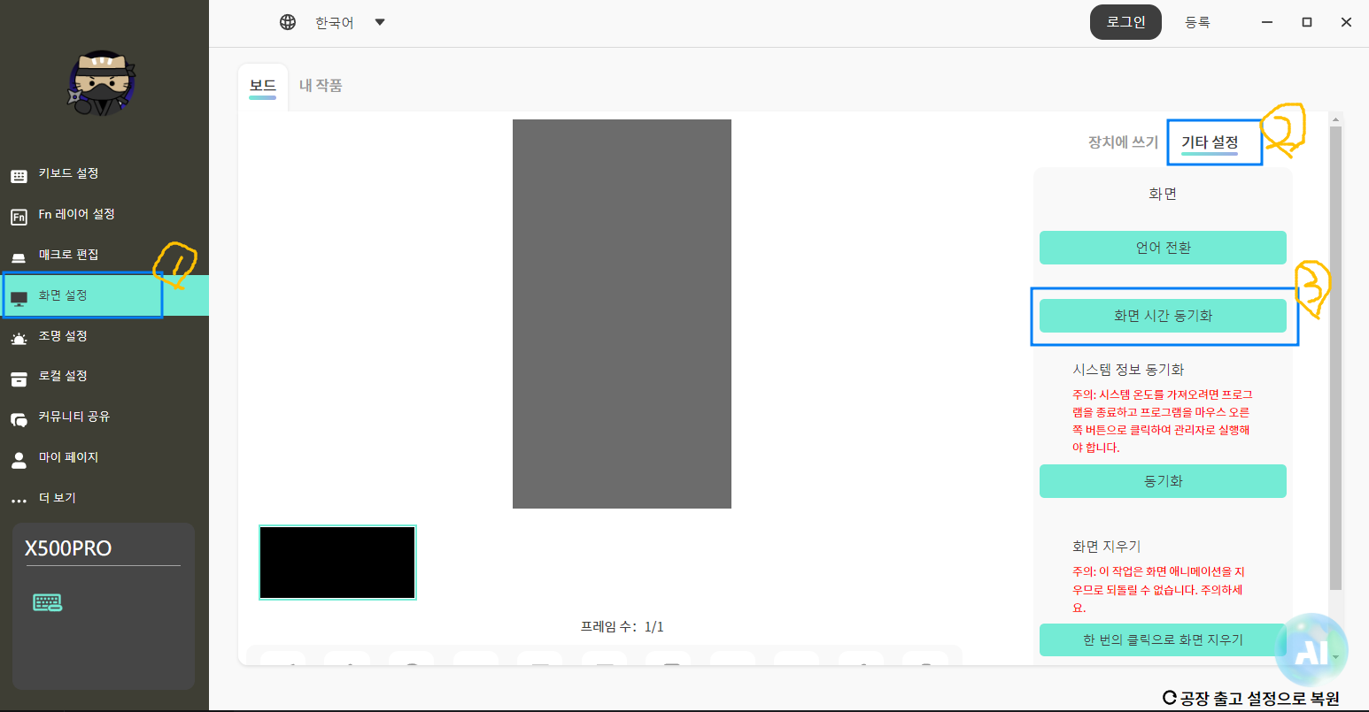 위 스텝을 따라 이동하신 후 화면 시간 동기화를 눌러주시면 됩니다.