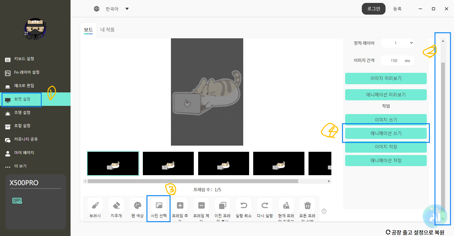 애니메이션 쓰기를 하면 움직이는 이미지가 등록됩니다.