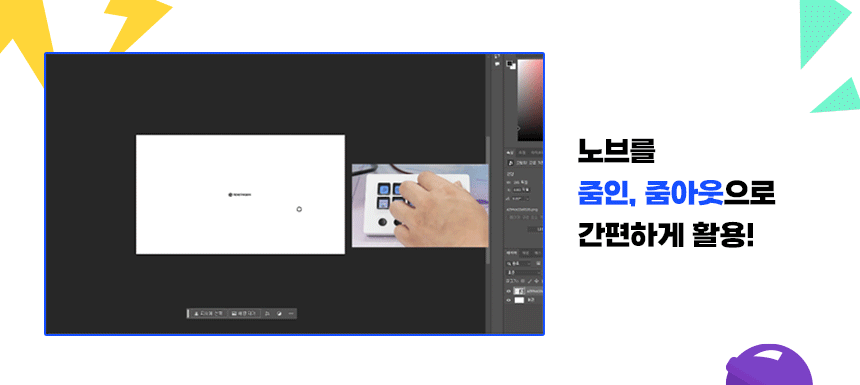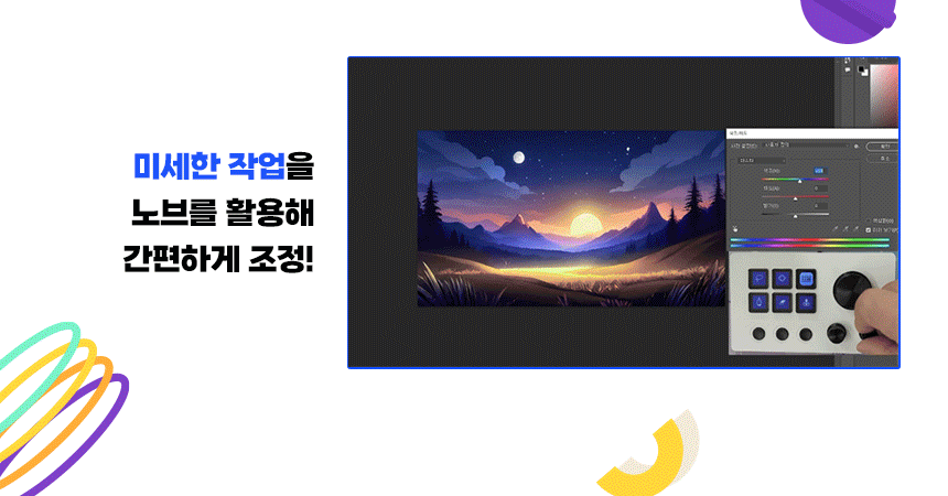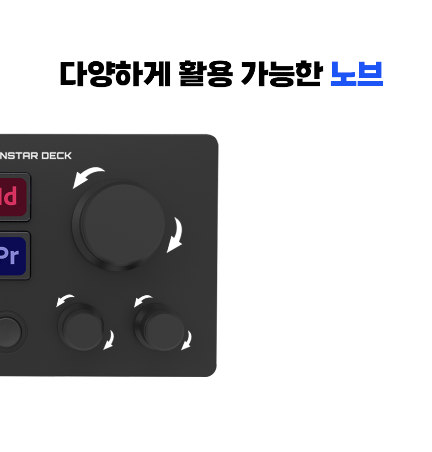 6개의 LCD 키와 3개의 노브를 통한 원터치 조작 및 정밀한 작업이 가능합니다. 앱, PC, 미디어 제어와 같은 기능들을 수행할 수 있으며 3개의 노브를 통해 화면 스크롤, 디자인 작업에서의 컨트롤 등을 지원합니다.