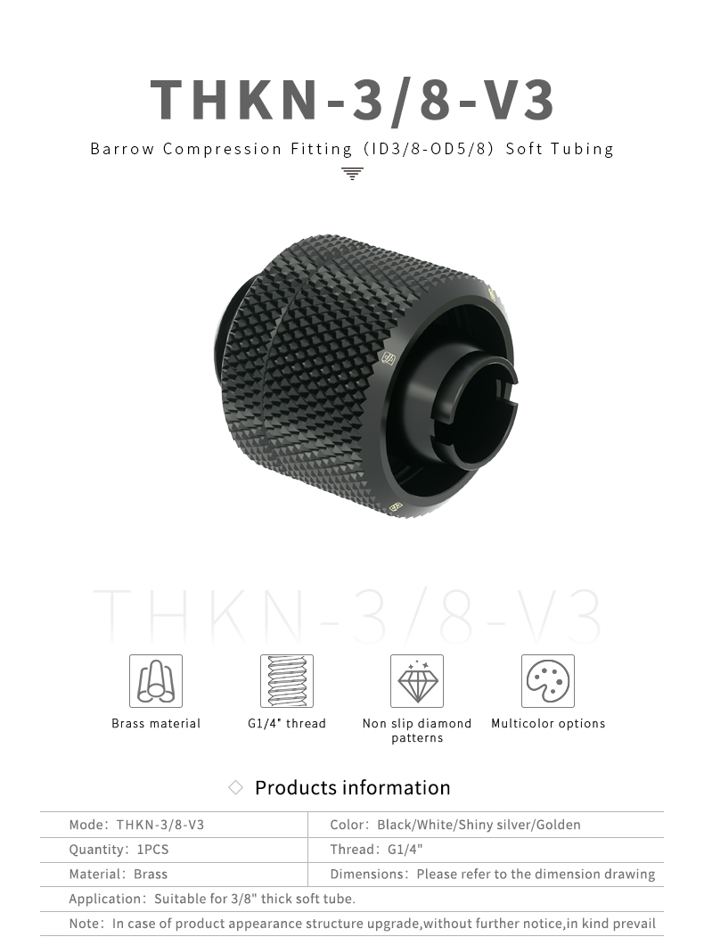 Barrow Compression Fitting ID3/8-OD5/8 Soft Tubing THKN-3/8-V3 V4