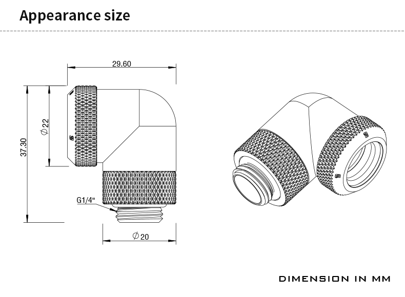 Barrow Compression Rotary 90-Degree Multi-Link Adapter 14MM TWT90KND-K14