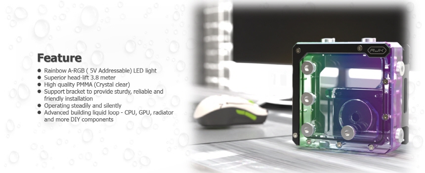 RGB water cooling pump, PC water cooling distro, RAIJINTEK RGB cooling plate, acrylic RGB waterway plate